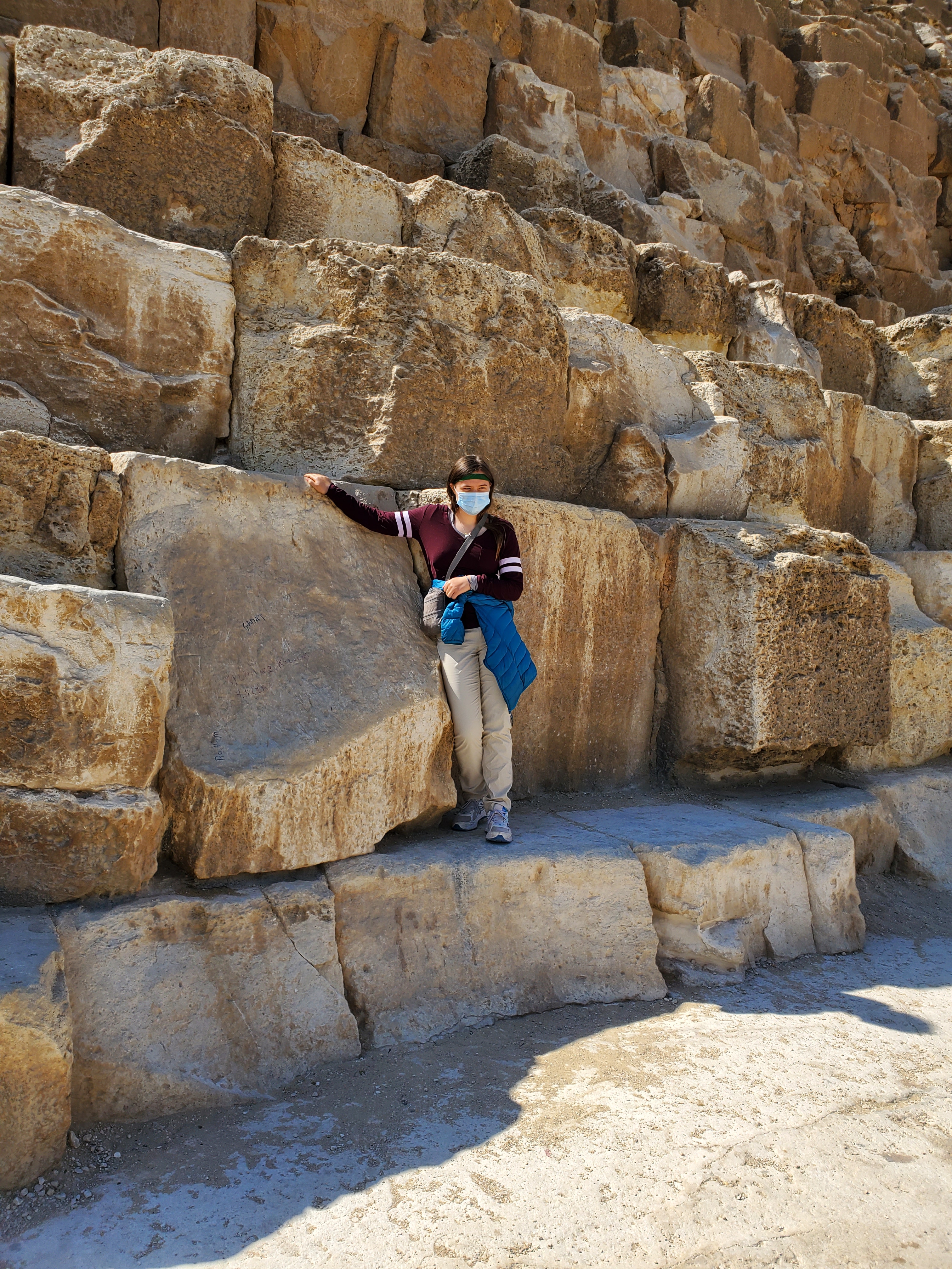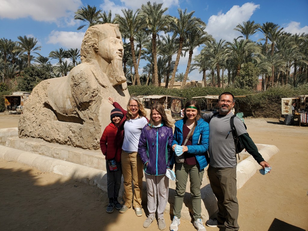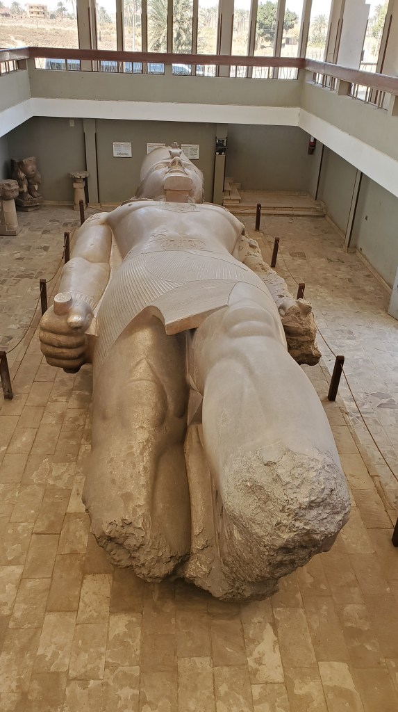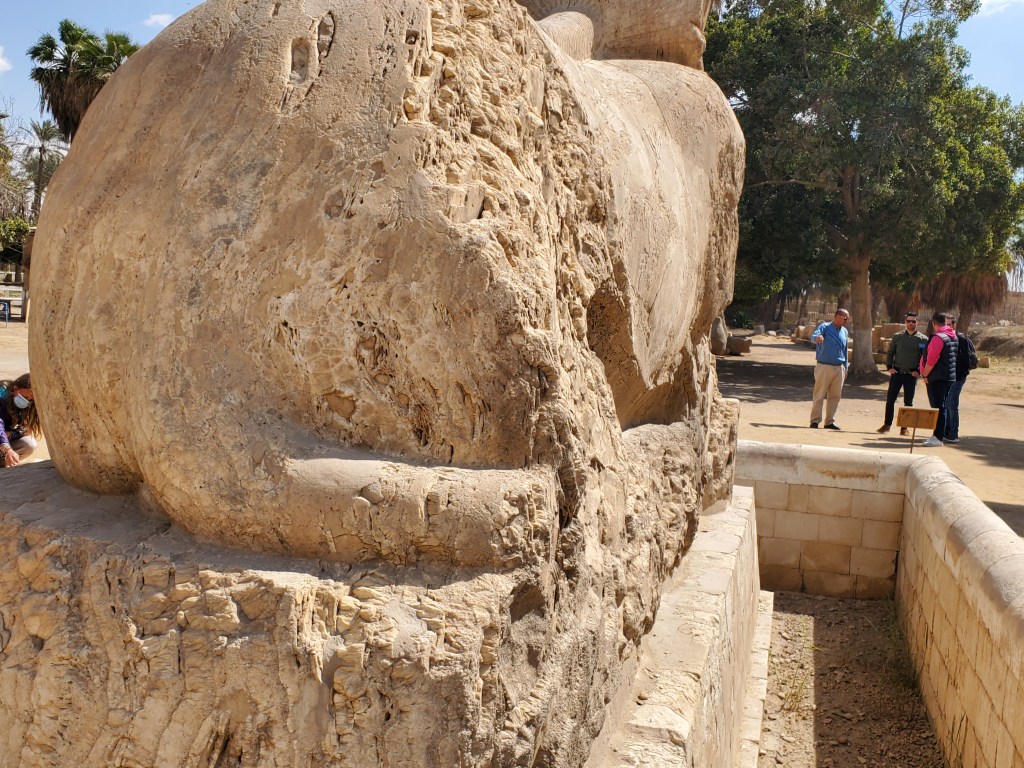 We met Mohamed, our tour guide for Egypt, and the six of us explored Memphis and Saqqara on our first full day.  Understatement: Memphis is old. While it didn’t become the capital of a united (Upper + Lower) Egypt until about 3100BC, it probably existed, in its prime location on the Nile, about 8000 years ago. Even when it wasn’t the capital after a thousand years, it was still an important city such that Ramses II (most famous/powerful/successful/ egotistical of all the arrogant 170 pharaohs) erected two huge statues of himself in Memphis and he died in 1200BC.  Ancient Egypt can throw thousand-year increments around like the US tosses billion-dollar price tags.