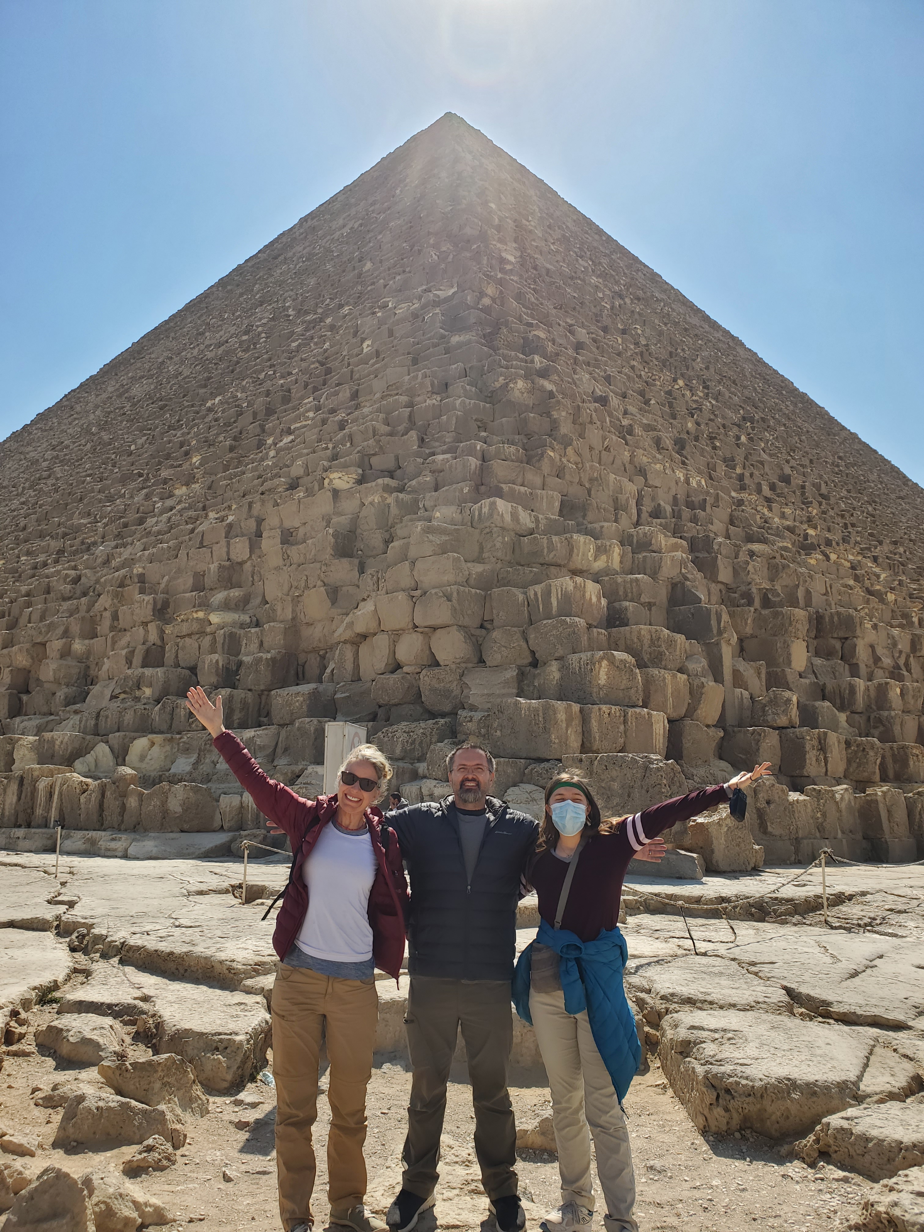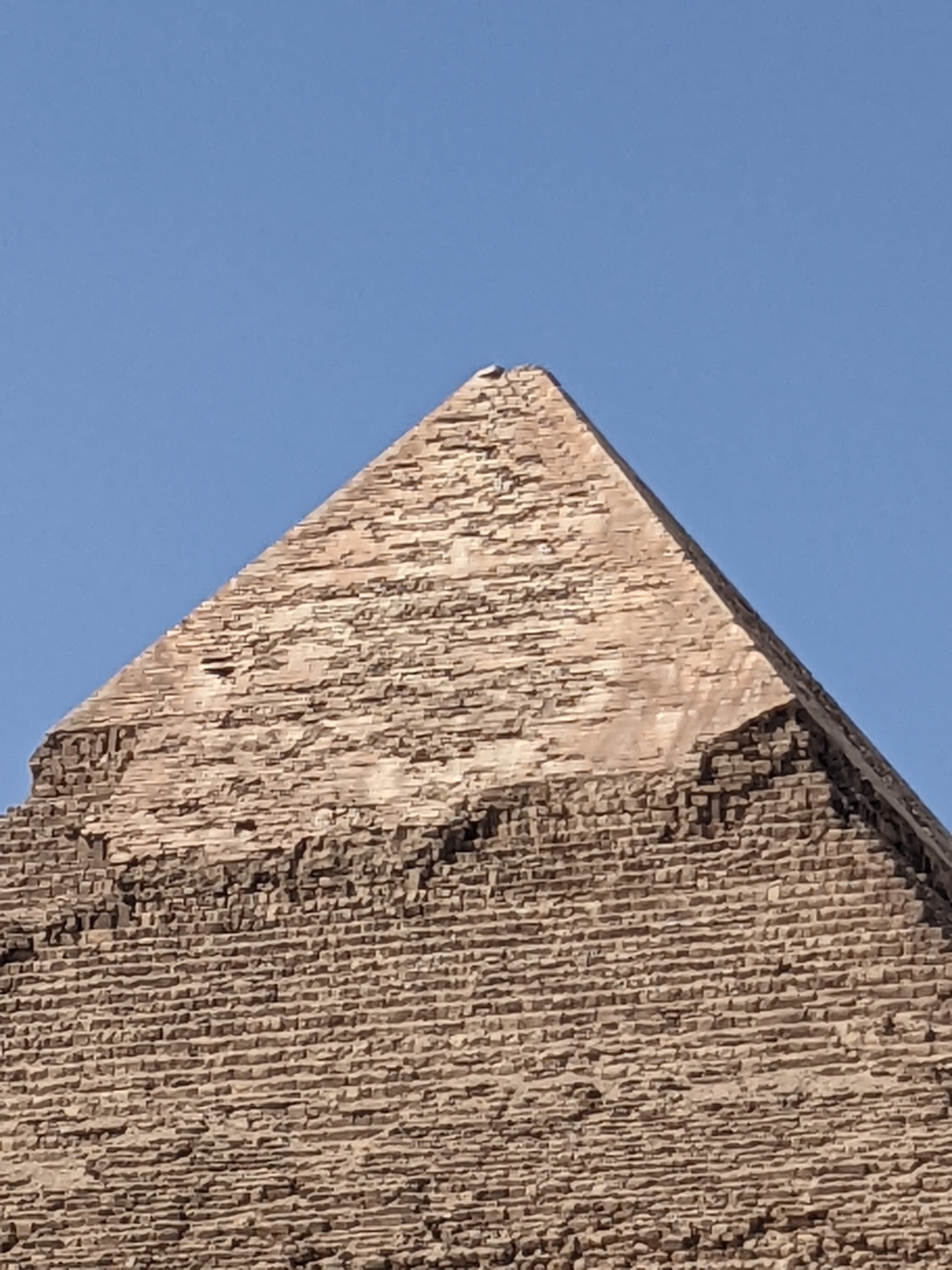 A fun fact about the pyramids, built by Father, Son, and Grandson: The Father’s (Khufu) was quite tall, and Son (Khafre) couldn’t disrespect his father by making his taller.  So he built his four meters shorter… on higher elevation. Grandson (Menkaure) couldn’t compete and just sulked over in a corner.