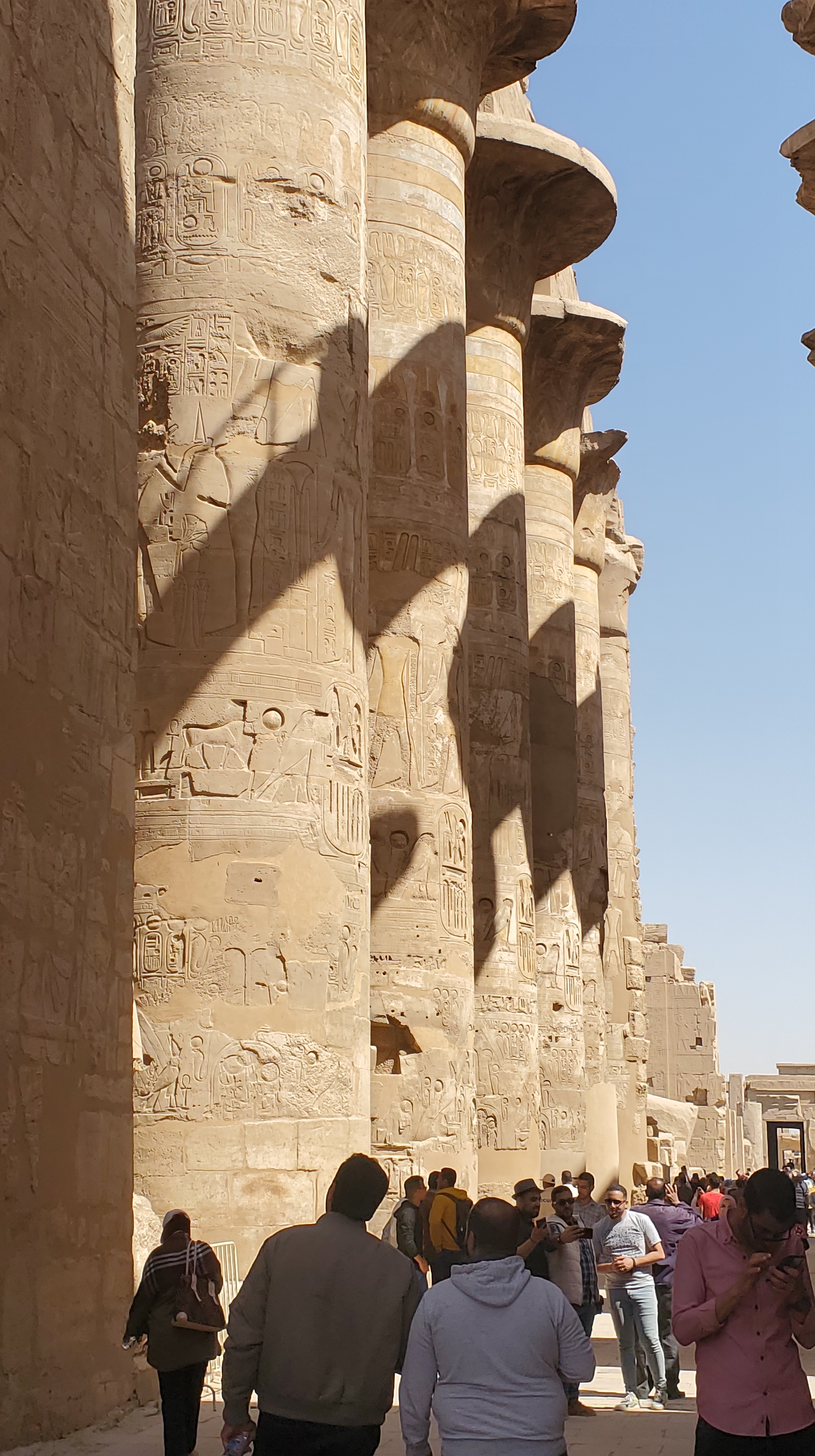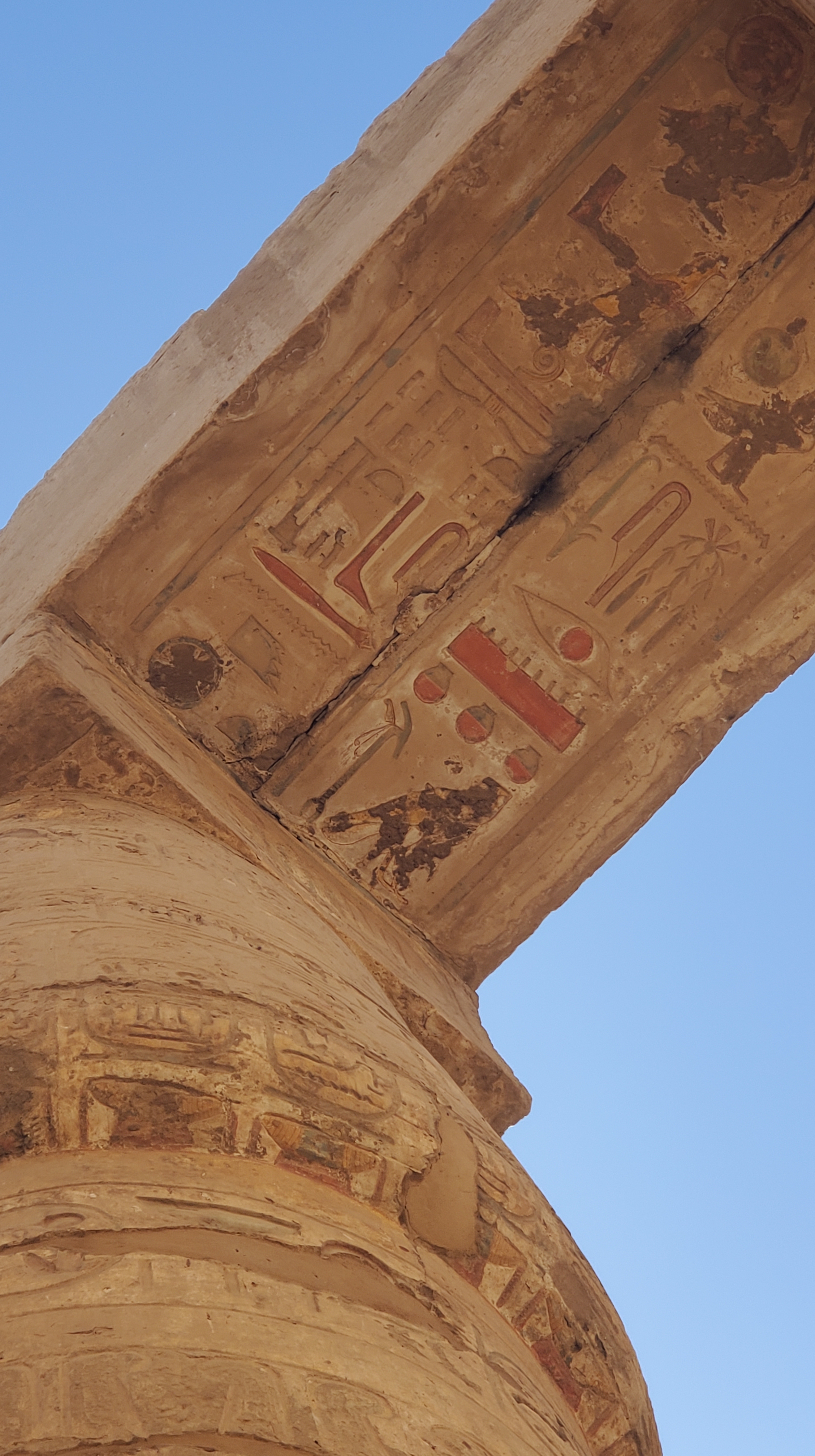 The drive to Luxor from where the felucca stopped was the Five Hours That Broke Our Kids in Egypt. We bribed them with anti-whine ice cream to spend a few hours at Karnak Temple, a structure that was added onto for 2000 years as king after king “humbly” built temples for their gods. We saw some of our first images in their original colors—what a difference it made, and one can begin to imagine how stunning they were in their first millennium or so.