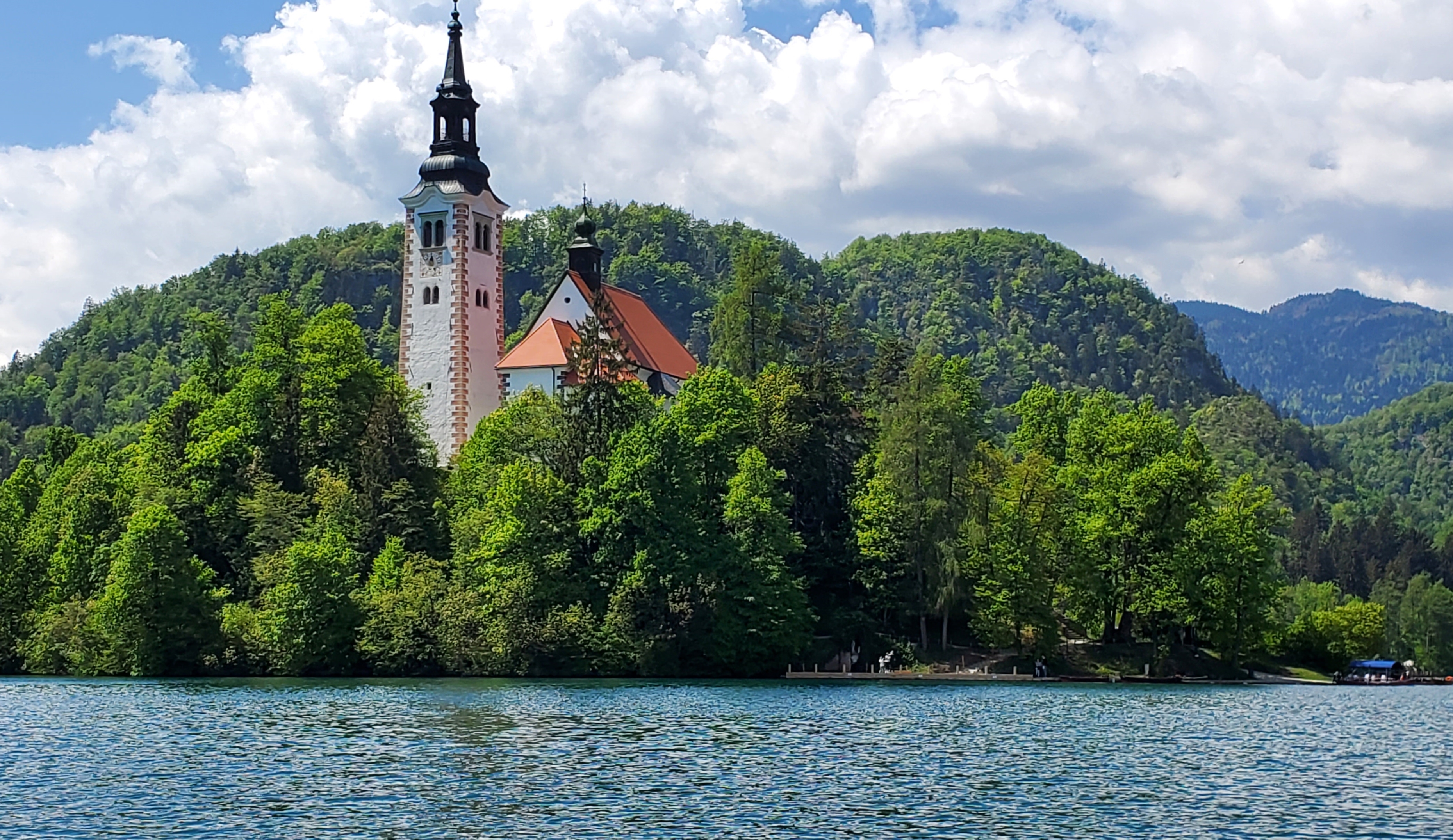 Bled Island. This tiny lake isle is mostly taken up by the Lady of the Lake church. The whole thing is adorable, from being rowed out on a pletna wooden boat, to a pretty little island to a cute little steepled church with a sweet little clock tower that also houses a museum on time-telling.