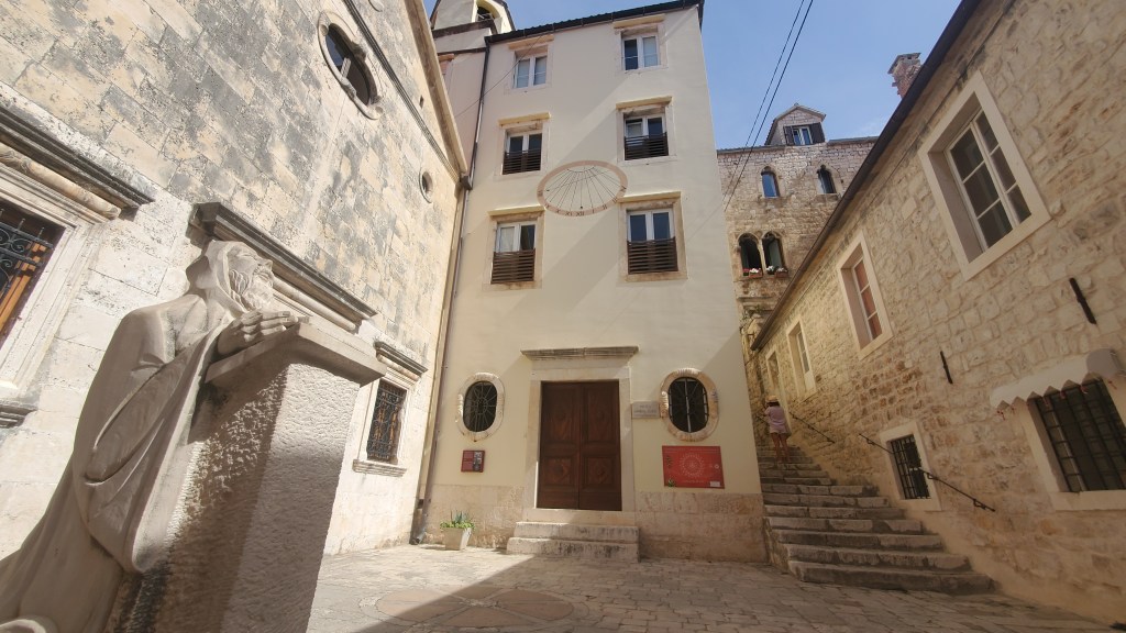 Zadar (I think) had a gate that shows it was built by the conquering Ventians (winged lion) during a period of peace (open book).