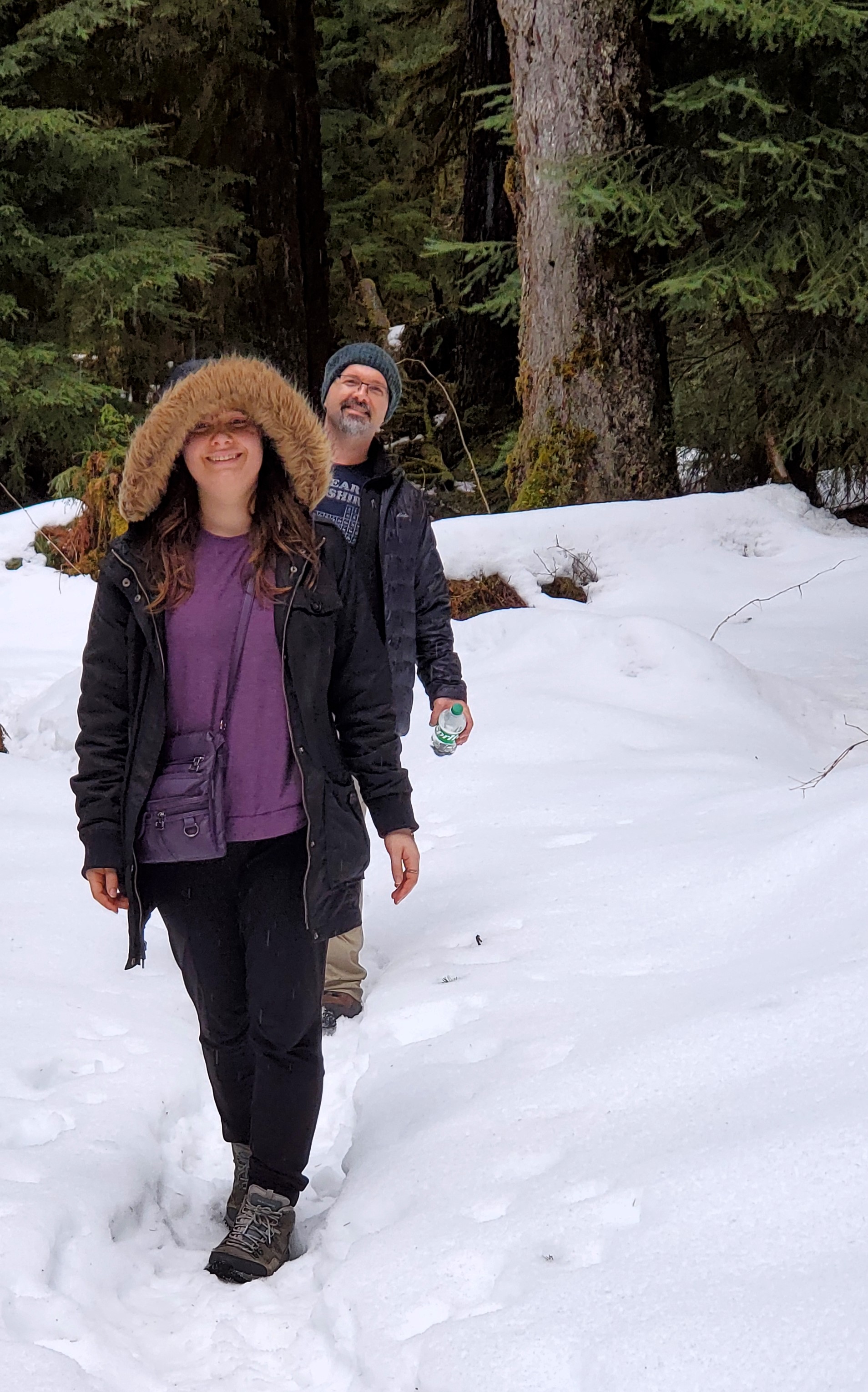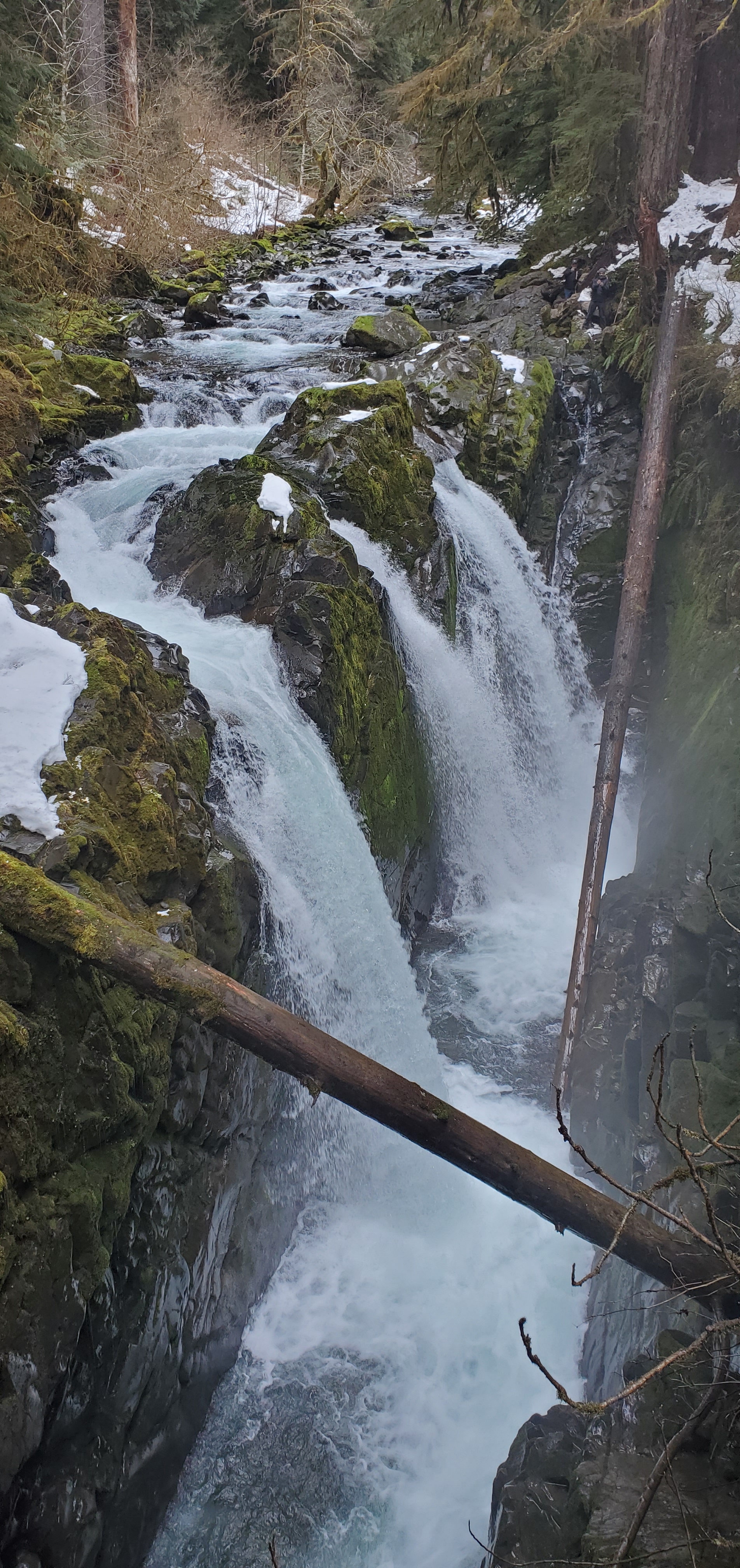 Our campsite also connected to the Sol Duc waterfall trails and Dwayne, Kyla, and I bundled up to explore. We had umbrellas, snow clothes, and tough boots–and needed them all on this April mountain trail.