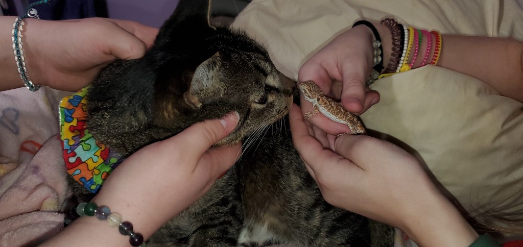 Art Gecko had been passed on to a new tween girl a year and a half ago and Piper had been making eyes and kissy faces at the bearded dragons at the pet store. I said no, quite firmly, several times. Then Dwayne left to help out his parents for ten days and Piper and her BF *really* got to work.