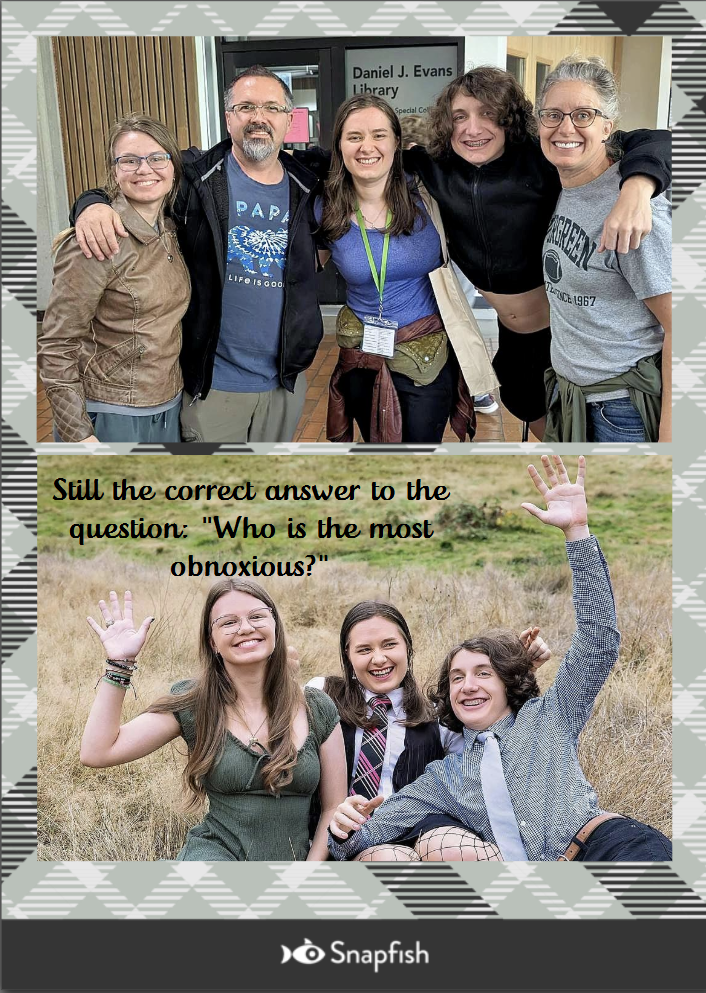 Last year, I got to wonder what Kyla would be doing after graduation and I’m so pleased she has found the right school for her brain and vibe just down in Olympia at Evergreen State College. [With geoducks as their mascots, and Greenies as their nickname, they’re not even trying to mask the weird.] I’m glad she was able to enter as a sophomore, because she’d like to major in everything, and is working toward a 5-year Bachelor of Science & Arts.[1] Phrases like “using paleo-oceanography to investigate the ocean’s chemical composition during the Archean era” pop out of her mouth occasionally and I have to run to my Kindle and find a sexy witchmance to read to bring back the equilibrium.