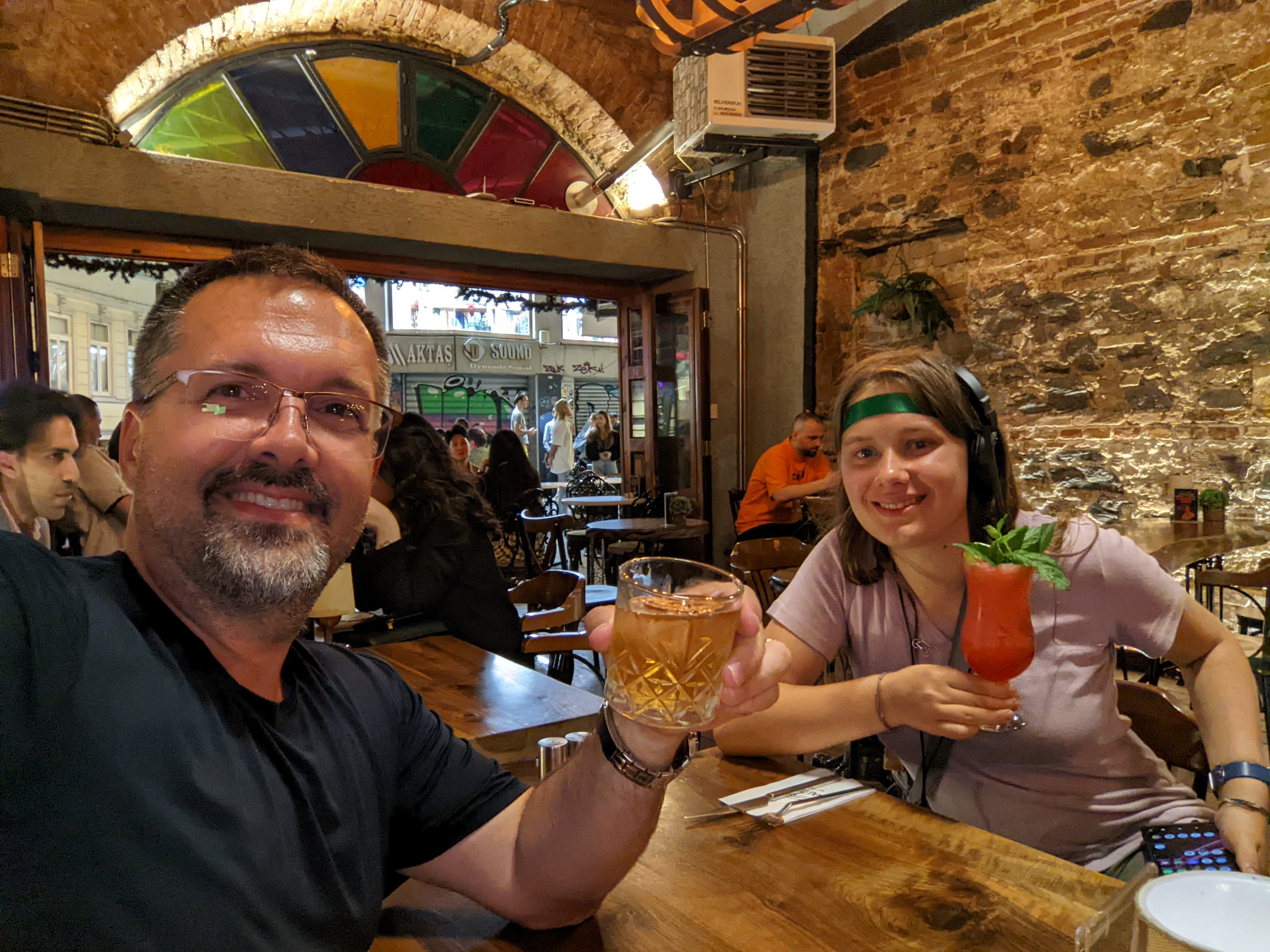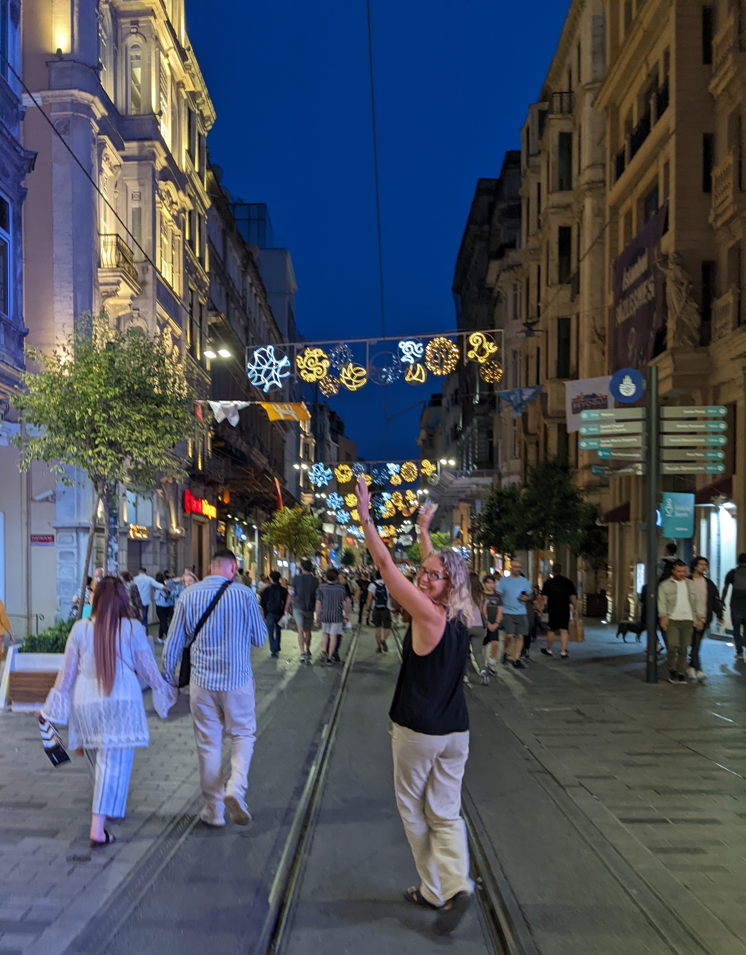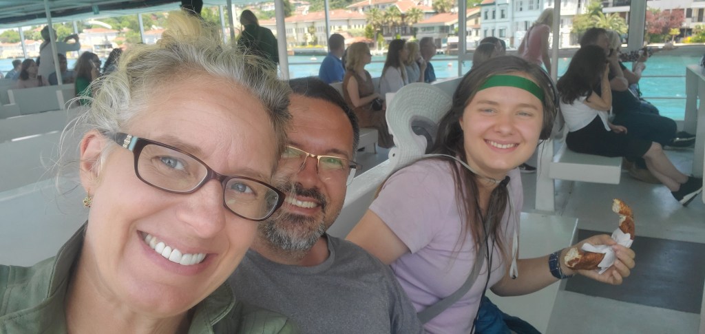 We started the day by walking the scenic way to the Covid clinic, as we were flying home on the second-to-last day of needing proof of negative tests to enter the US. We checked out the local coffee franchise for strength to continue our walk down to the wharf. It should be noted that after 8 days in Egypt drinking (or gnawing on) Turkish coffee with Mohammad, Dwayne really couldn’t stomach more than one cup of the authentic slop in Istanbul. Wes, our other household coffee drinker, who had gone from “sipsies” before the trip to ordering full-size afternoon cappuccinos for himself by the time we hit Italy, was also unable to stomach the Turkish version. I cried uncle right away and just went for the beer. 😉