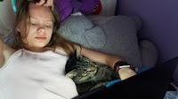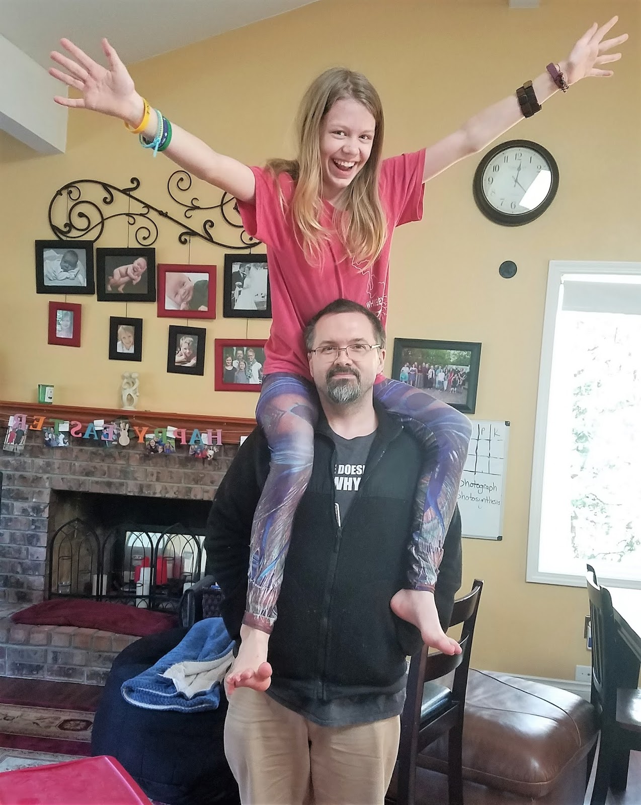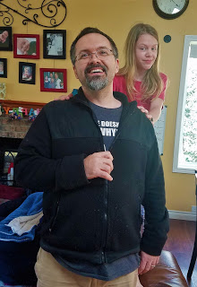 I came up with a bacon, bread, and blueberry breakfast to eat while we watched the service on youtube live. Then the Evil Easter Bunny hid the bunnies with clues of where the baskets were hidden. Dwayne got to learn that we keep the extra airfilters in a box on top of the wardrobe in the mudroom. All these years, and he was unaware….much to EEB’s knowledge and amusement.