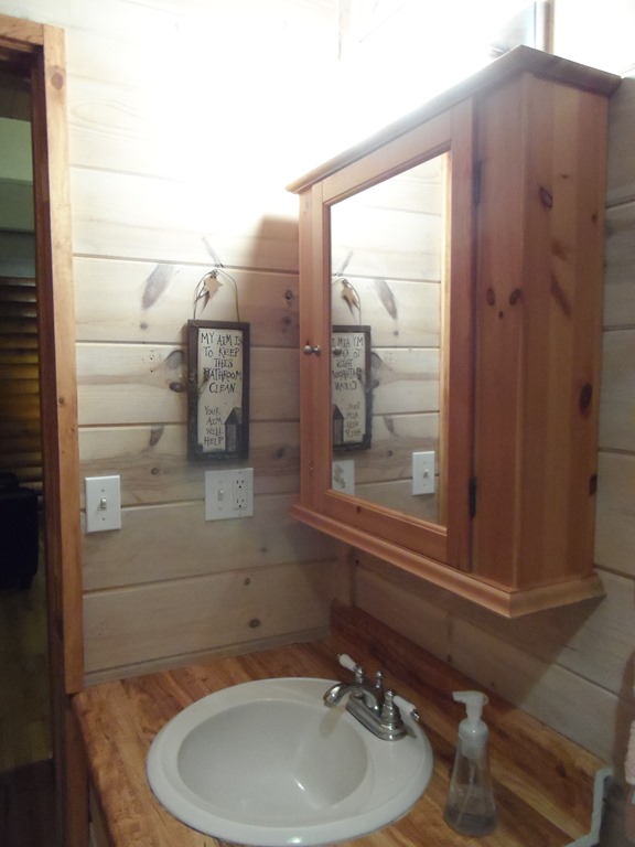 My friend, Susanne, had a medicine cabinet leftover from a remodel a year or so ago. She wanted it out of her garage so our cabin got an improvement. Thanks, Friend!