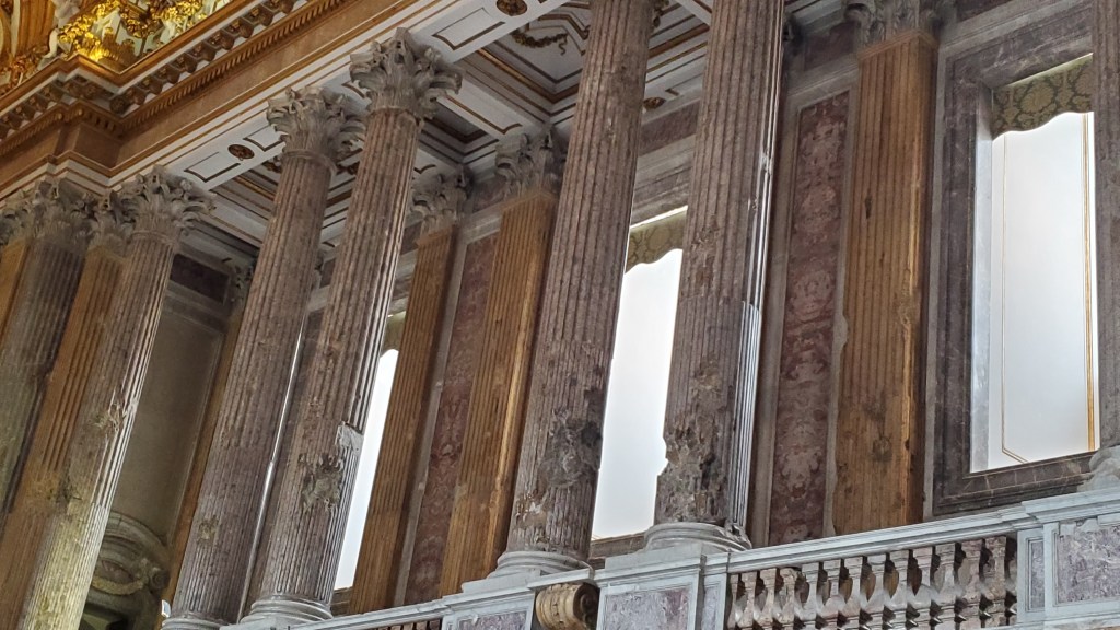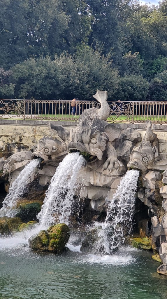 …and Wes can hardly think of anything stupider. Well, I had to like enough for all of us. The Royal Place of Caserta is supposedly the largest palace in Europe, by volume, which really means there’s at least one with more square footage. At a minimum, it’s educational to see something preposterously large and grand, in a “let them eat cake”* way. All ceilings, walls, and floors were extravagant, and it had some basic furniture, like a blue velvet throne. I liked the reading rooms and libraries of course, but it’s all designed for display, not for privacy or regular living. Not one of us wanted to live there.