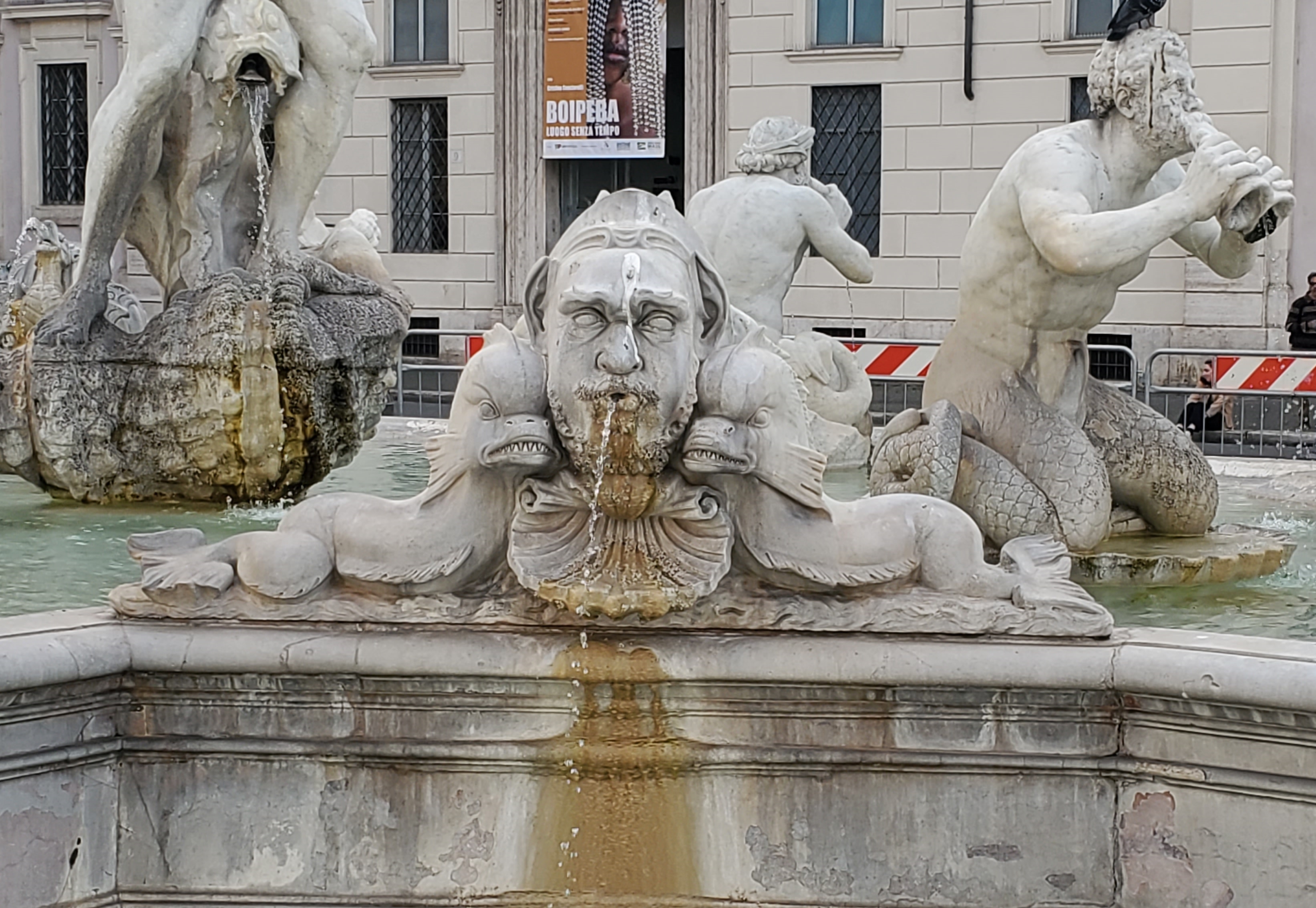 Observation #3: Rome rocks water. Of course, the many public fountains are filled with water from aqueducts, with Trevi being the most famous*. But there are good drinking fountains as well. One of our guides showed us that some of the fountains have a small hole facing upward. If you use a finger to cover up the spout, water comes out the top hole like a drinking fountain. Neat engineering!