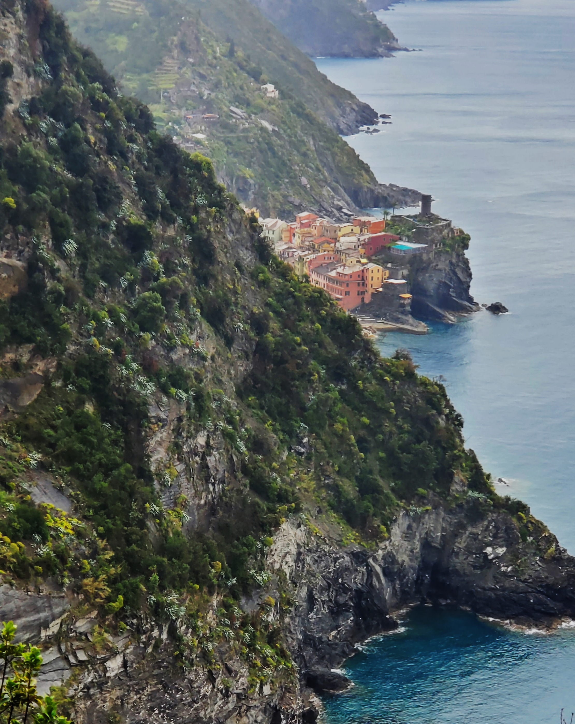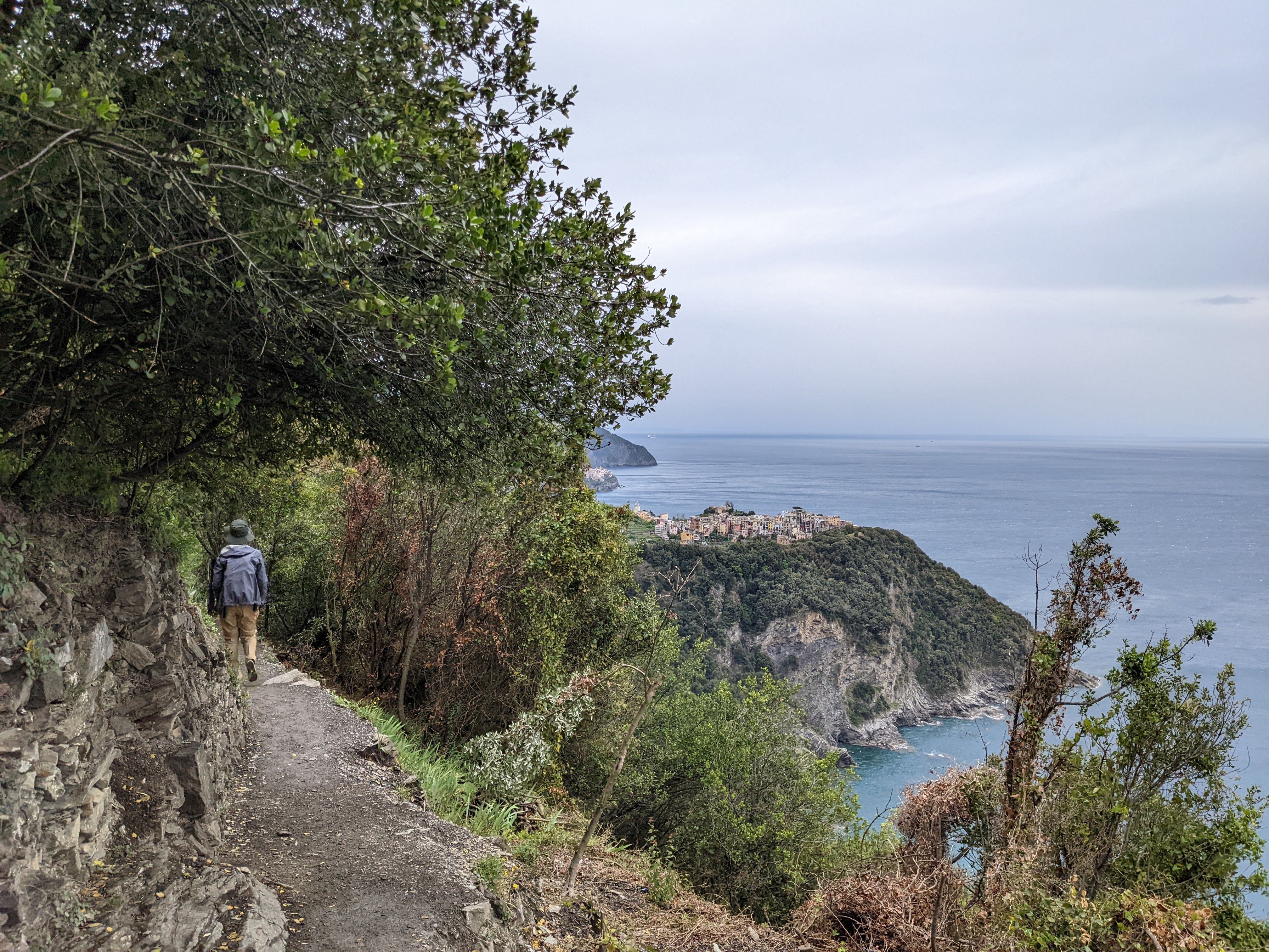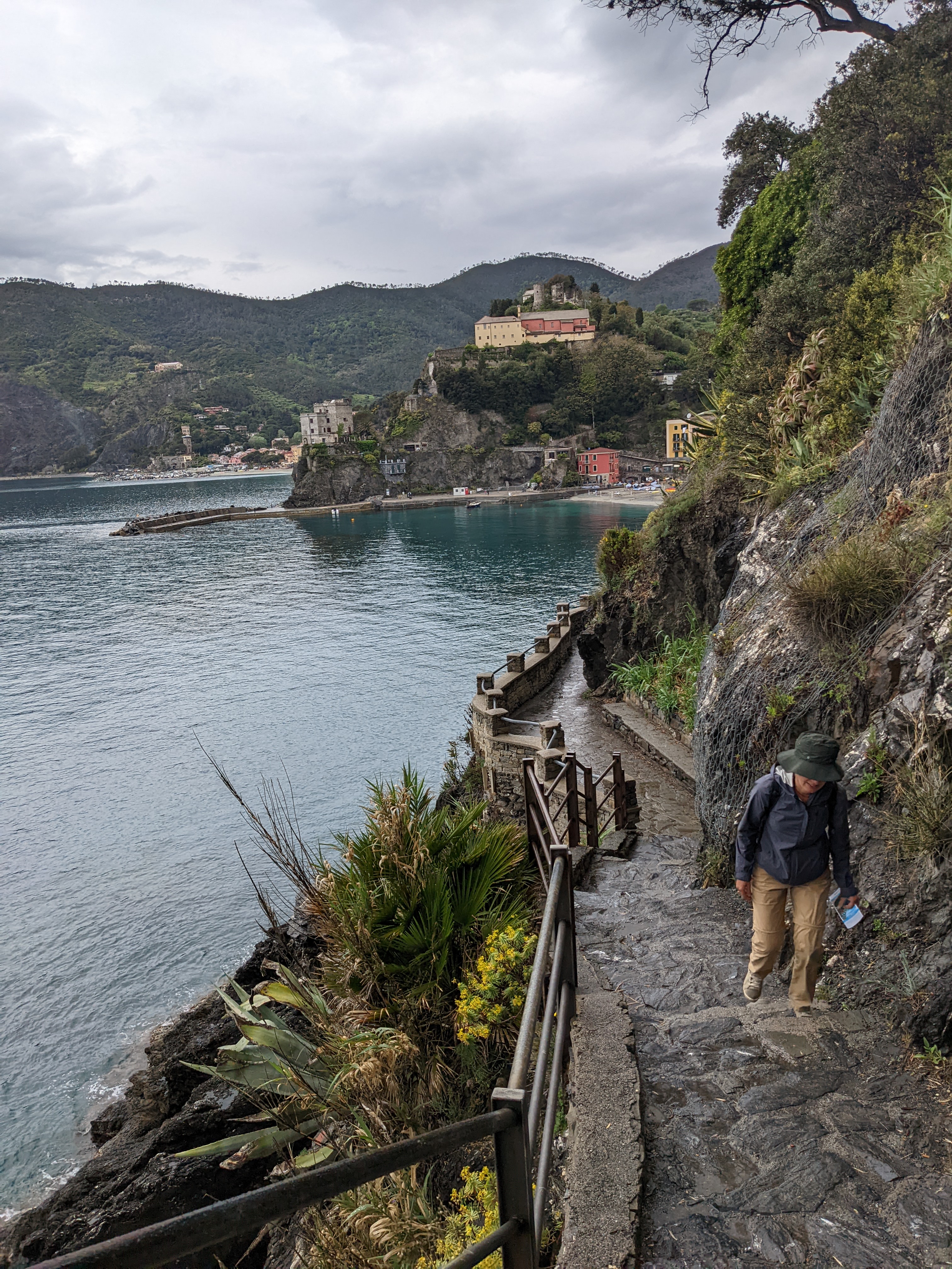 We had an ideal location in Monterosso town, with a short walk with luggage to our hotel, a long stretch of beach with a Colossal Neptune holding up a cliffside, good restaurants and shops, and more importantly, laundry. And being the northernmost town, it was an ideal spot to start our trek.
