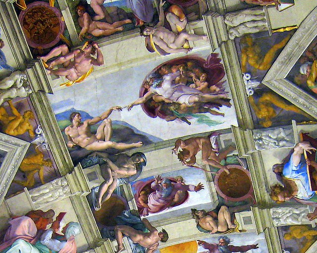 What does impress me is that this is Michelangelo’s debut fresco, and he had only done a few public paintings before this, though he had an impressive sculpture resumé. To go from chisel to paintbrush, and find that this is what comes out of your palette, is pretty impressive.