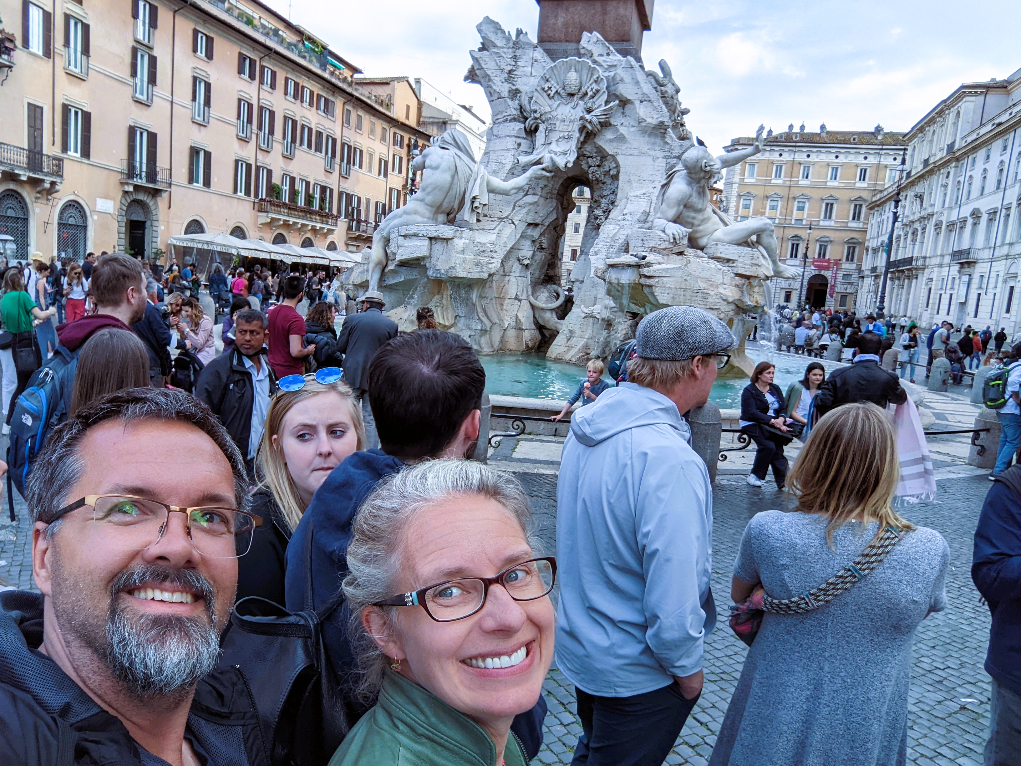 *The legend is that if you take a coin and toss it over your opposite shoulder, you will return to Rome. None of us bothered. However, they collect thousands of Euros a day for charity from Trevi alone, so I approve.