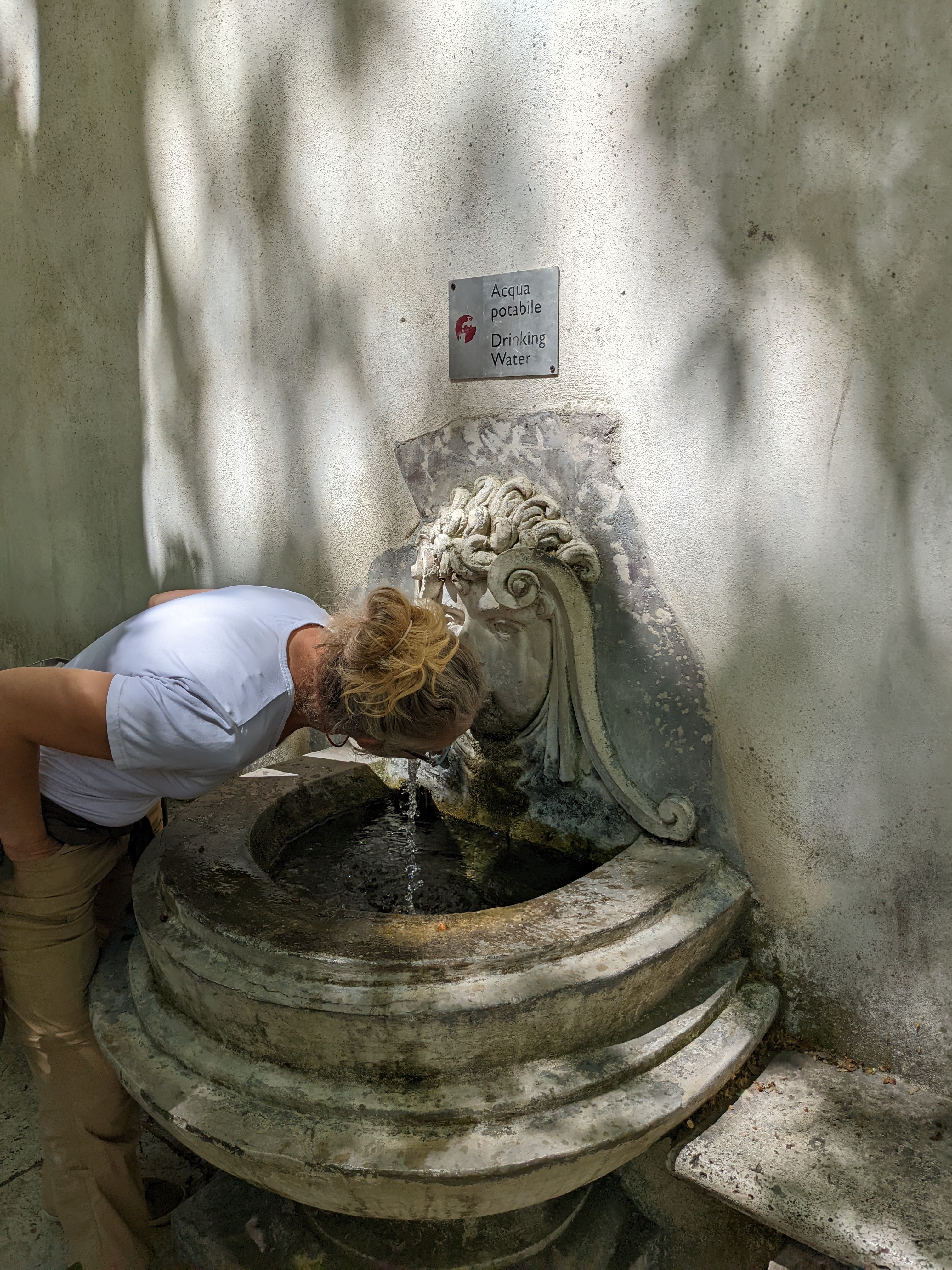 More interesting to me was the D’Este Gardens a few minutes away. It is also a grand house, but by this point, we have seen lots of places with extravagantly painted walls and gilded ceilings. Its history includes being a convent until a cardinal came to visit and liked it so much he kicked out all the nuns and declared it his palace. I swear, it is harder and harder to find Christianity in the Church’s historical footprint**.