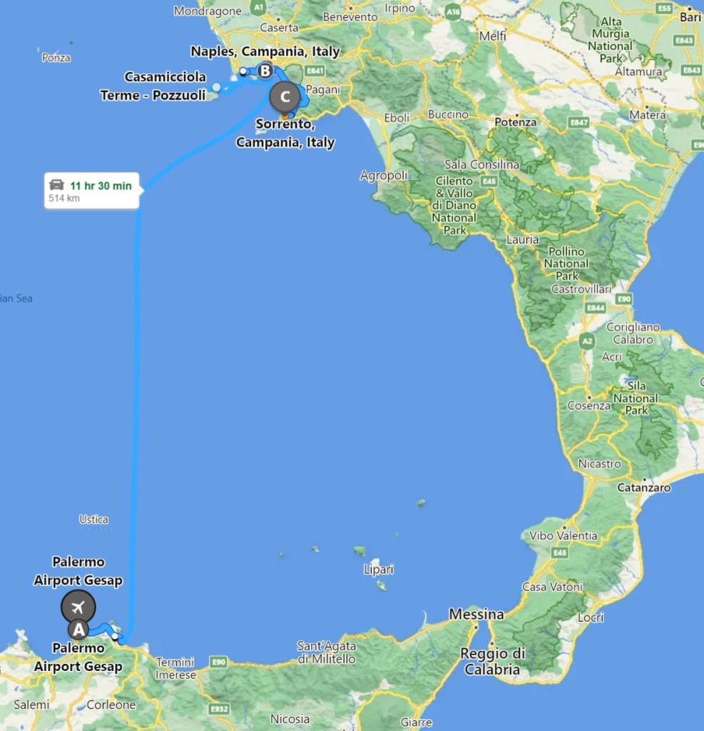 Flashback: When we went to the Castera Palace, we rented a car for the afternoon from Sorrento, which straddles the greater Naples area and Amalfi Coast. We added extra difficulty points by getting a manual transmission and choosing a national holiday to make the trip. I tell you, there are few things sexier than a man who can drive the end-of-the-coast road out of Sorrento without injuring my children–or anyone else. I did the navigating and encouraging, and man, that man’s synapses were firing! I was so impressed.