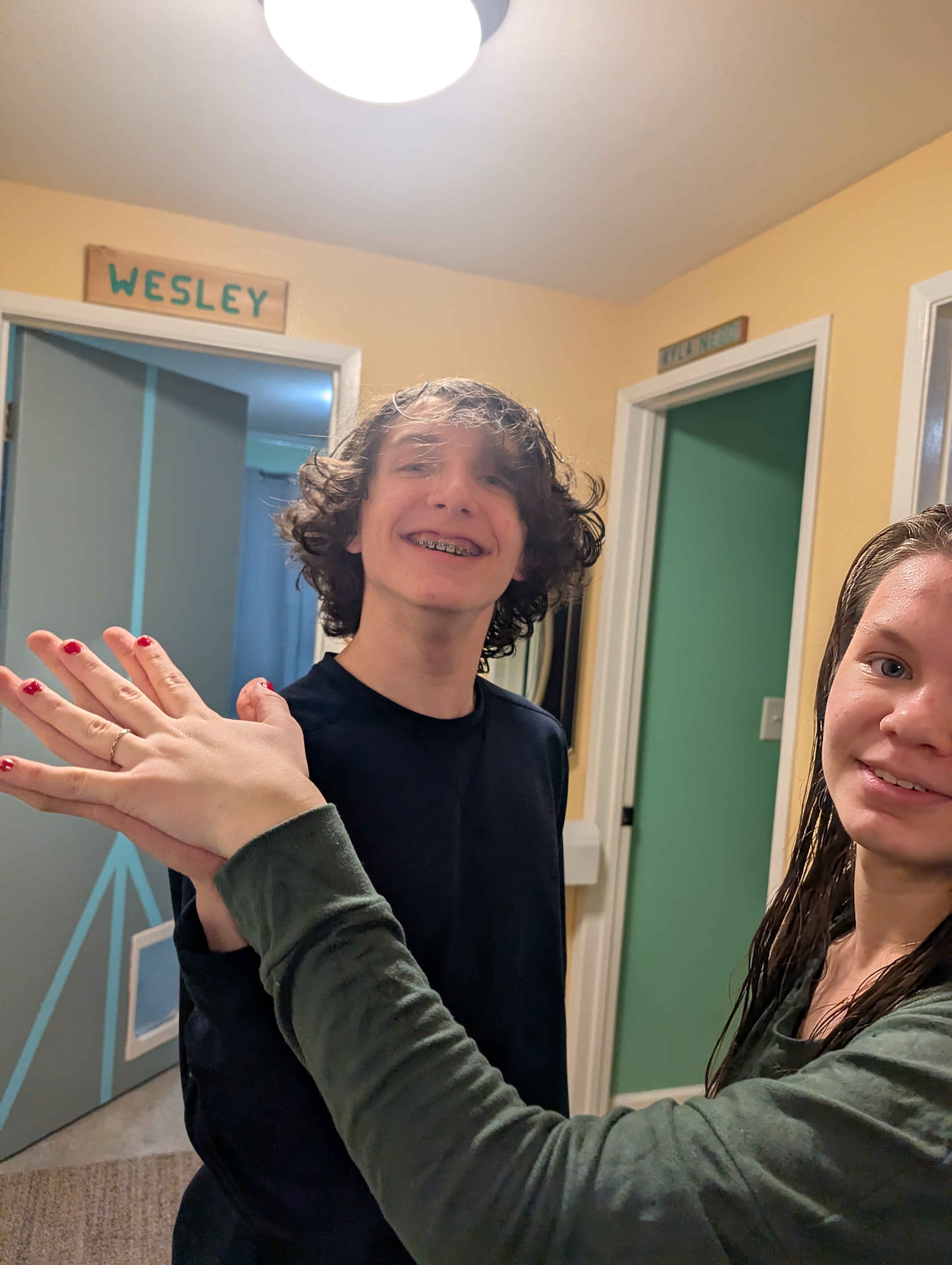 Anyway, to give Kyla her due, these are her two favorite pieces. If you zoom in on her self-portrait, you can see her pupils are CDs, a nod to her early love of audiobooks. She captured how she puts a finger behind one ear (it’s a bit of a neurodivergent regulation tactic), wears a ribbon as a headband, and often wears her dragon necklace. She’s really captured herself! Kyla would say it’s not so much talent as attention to detail and perseverance (which she has in spades), but I’m not sure it all can be separated so easily. I hope she continues to draw!